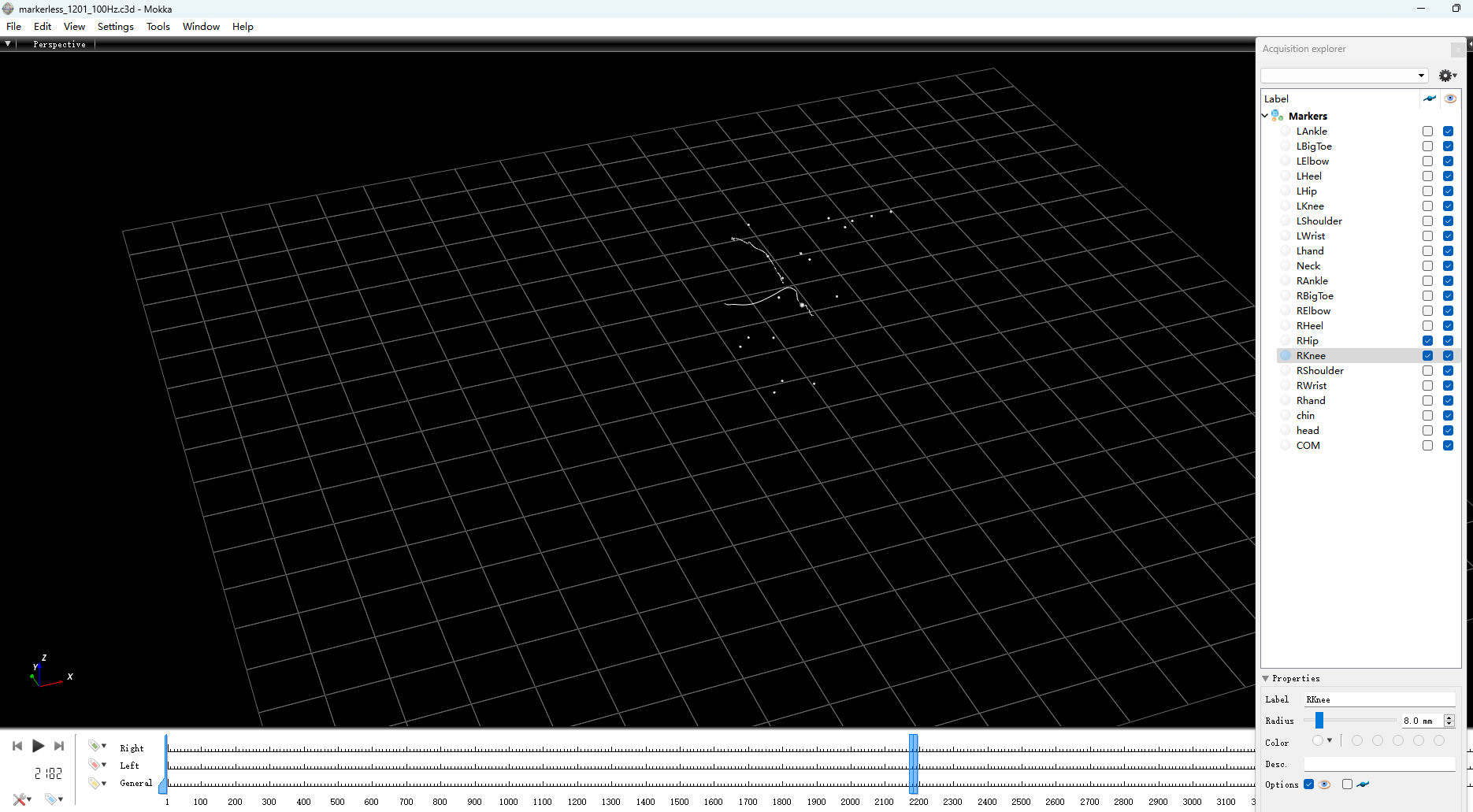 I’ve converted my CSV to C3D as suggested. The data come from a markerless system, so the C3D only contains virtual markers like LAnkle, LBigToe, LHeel,LKnee,LShoudler,LWrist,LHand,Neck,chin....