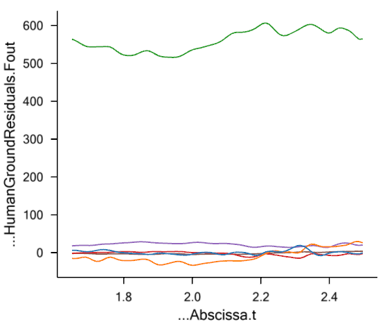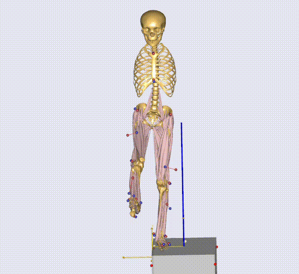 The experiment involves a subject supported by a trunk rig, standing on one leg on the top of a block. The block is positioned on a 1-axis force plate. The subject performs a forward and backward leg swing. We have successfully modeled the kinematics of a leg swing experiment in AMS, but the Inverse Dynamics is giving some trouble. While the system detects contact (InContactOnOff =1), the ankle and knee reaction forces are staying very low and the human-ground residuals are as large as the measured ground reaction forces. Setting MOCAP_HUMAN_GROUND_RESIDUALS to "PelvisWeak" only redistributes the forces without achieving proper muscle recruitment/joint reaction forces.